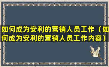 如何成为安利的营销人员工作(如何成为安利的营销人员工作内容)
