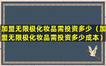 加盟无限极化妆品需投资多少(加盟无限极化妆品需投资多少成本)