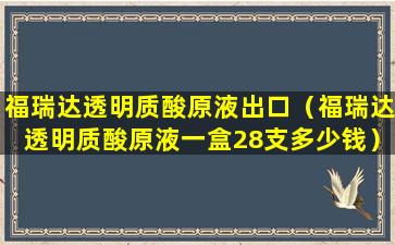 福瑞达透明质酸原液出口(福瑞达透明质酸原液一盒28支多少钱)