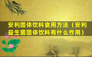 安利固体饮料食用方法(安利益生菌固体饮料有什么作用)