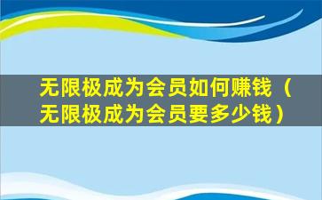 无限极成为会员如何赚钱(无限极成为会员要多少钱)