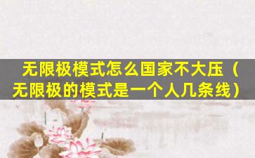 无限极模式怎么国家不大压(无限极的模式是一个人几条线)