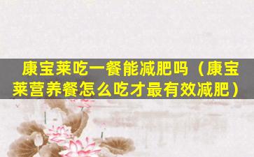 康宝莱吃一餐能减肥吗(康宝莱营养餐怎么吃才最有效减肥)