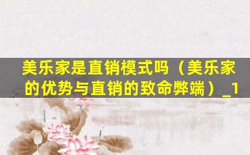 美乐家是直销模式吗(美乐家的优势与直销的致命弊端)