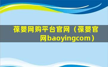 葆婴网购平台官网(葆婴官网baoyingcom)