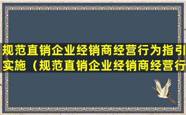 规范直销企业经销商经营行为指引实施(规范直销企业经销商经营行为指引实施办法)