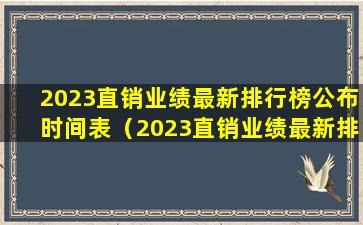 2023直销业绩最新排行榜公布时间表(2023直销业绩最新排行榜公布时间表图片)