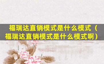 福瑞达直销模式是什么模式(福瑞达直销模式是什么模式啊)
