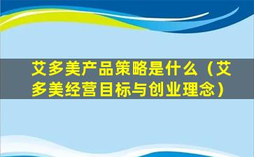 艾多美产品策略是什么(艾多美经营目标与创业理念)