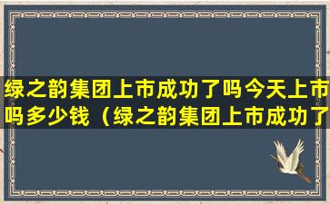 1、绿之韵集团上市成功了吗今天上市吗多少钱
