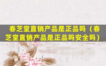 春芝堂直销产品是正品吗(春芝堂直销产品是正品吗安全吗)