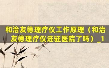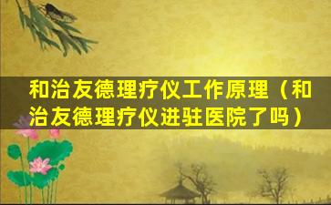 和治友德理疗仪工作原理(和治友德理疗仪进驻医院了吗)