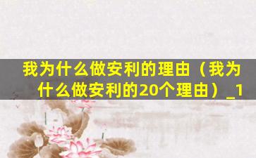 我为什么做安利的理由(我为什么做安利的20个理由)