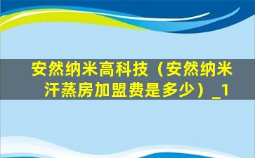 安然纳米高科技(安然纳米汗蒸房加盟费是多少)