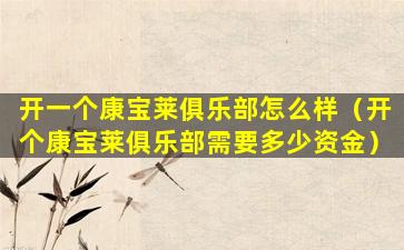 开一个康宝莱俱乐部怎么样(开个康宝莱俱乐部需要多少资金)