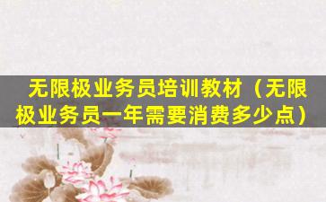 无限极业务员培训教材(无限极业务员一年需要消费多少点)