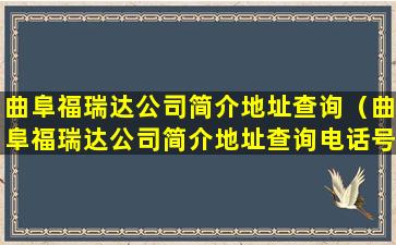 曲阜福瑞达公司简介地址查询(曲阜福瑞达公司简介地址查询电话号码)