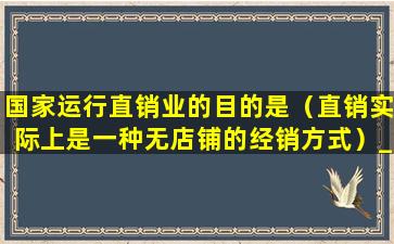 国家运行直销业的目的是(直销实际上是一种无店铺的经销方式)
