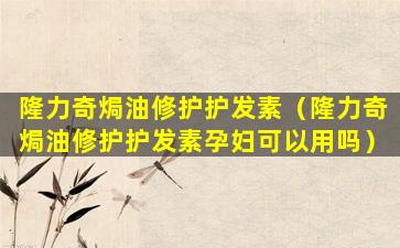 隆力奇焗油修护护发素(隆力奇焗油修护护发素孕妇可以用吗)