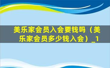 美乐家会员入会要钱吗(美乐家会员多少钱入会)