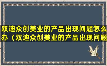 双迪众创美业的产品出现问题怎么办(双迪众创美业的产品出现问题怎么办呢)