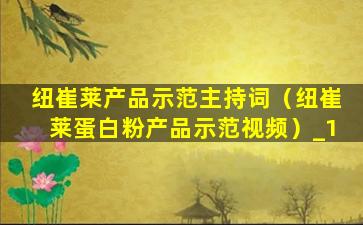 纽崔莱产品示范主持词(纽崔莱蛋白粉产品示范视频)