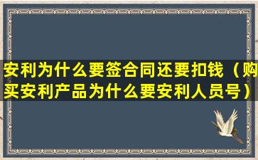 安利为什么要签合同还要扣钱(购买安利产品为什么要安利人员号)