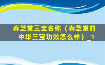 春芝堂三宝名称(春芝堂的中华三宝功效怎么样)