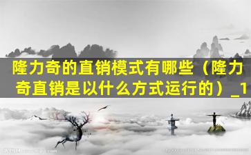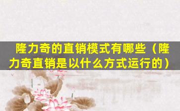 隆力奇的直销模式有哪些(隆力奇直销是以什么方式运行的)