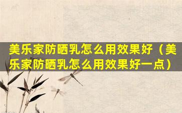 美乐家防晒乳怎么用效果好(美乐家防晒乳怎么用效果好一点)