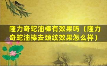 隆力奇蛇油棒有效果吗(隆力奇蛇油棒去颈纹效果怎么样)