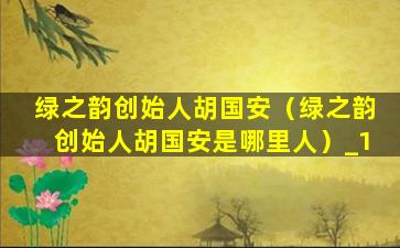 绿之韵创始人胡国安(绿之韵创始人胡国安是哪里人)