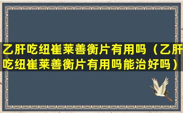 2、乙肝吃纽崔莱善衡片有用吗能治好吗
