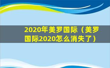 2020年美罗国际(美罗国际2020怎么消失了)