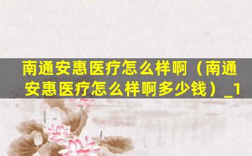 南通安惠医疗怎么样啊(南通安惠医疗怎么样啊多少钱)