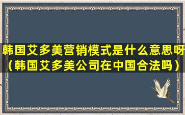 韩国艾多美营销模式是什么意思呀(韩国艾多美公司在中国合法吗)
