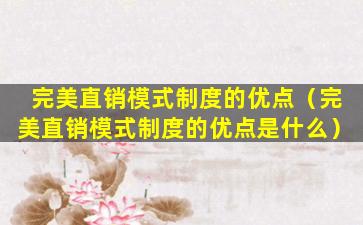 完美直销模式制度的优点(完美直销模式制度的优点是什么)