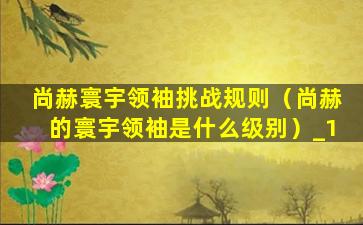 尚赫寰宇领袖挑战规则(尚赫的寰宇领袖是什么级别)