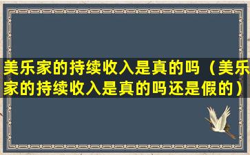 美乐家的持续收入是真的吗(美乐家的持续收入是真的吗还是假的)