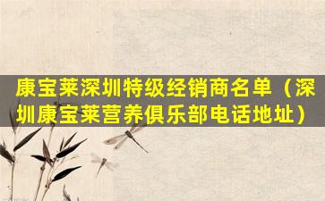 康宝莱深圳特级经销商名单(深圳康宝莱营养俱乐部电话地址)