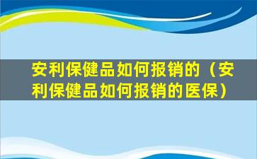 安利保健品如何报销的(安利保健品如何报销的医保)