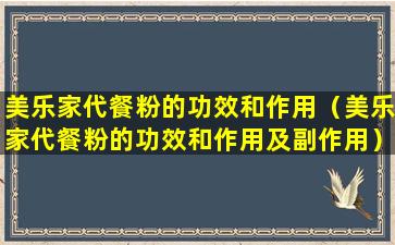 美乐家代餐粉的功效和作用(美乐家代餐粉的功效和作用及副作用)