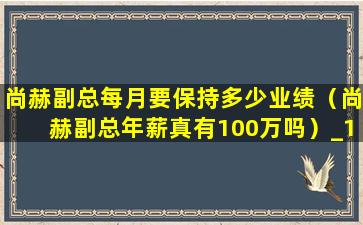 尚赫副总每月要保持多少业绩(尚赫副总年薪真有100万吗)