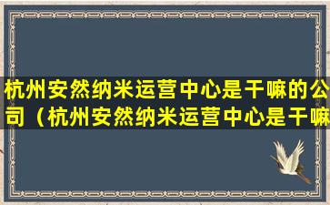 杭州安然纳米运营中心是干嘛的公司(杭州安然纳米运营中心是干嘛的公司啊)