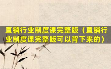 直销行业制度课完整版(直销行业制度课完整版可以背下来的)