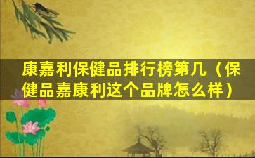 康嘉利保健品排行榜第几(保健品嘉康利这个品牌怎么样)