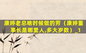 康婷老总啥时候做的劳(康婷董事长是哪里人,多大岁数)