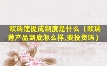 欧瑞莲提成制度是什么(欧瑞莲产品到底怎么样,要投资吗)