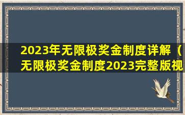 2023年无限极奖金制度详解(无限极奖金制度2023完整版视频)