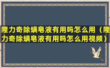 2、隆力奇除螨皂液有用吗怎么用视频